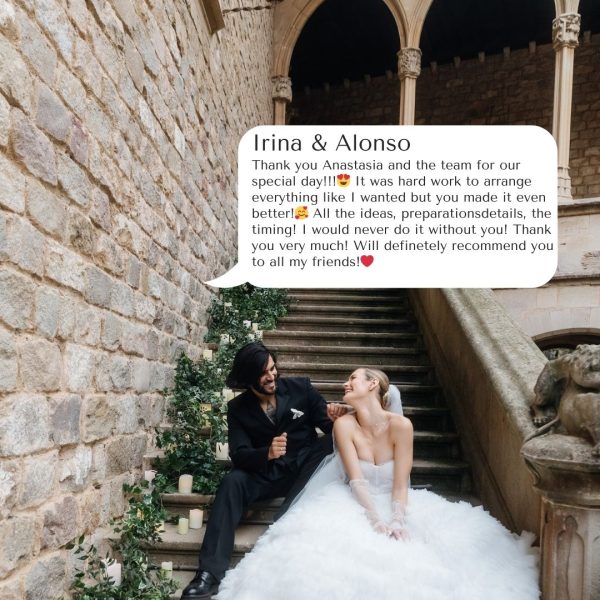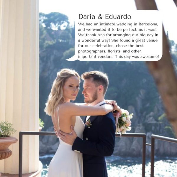 As a luxury wedding planner in Barcelona, we’re here to turn your dream day into a reality with elegance and ease. Our team is passionate about crafting bespoke celebrations, offering exclusive wedding planning services throughout Barcelona and the surrounding area. With us, you’ll have access to handpicked venues, top-tier suppliers, and a personalized wedding concept that captures your unique vision. Our approach is entirely customized, focusing on your specific wishes and every detail that matters most. From the initial planning stages to the final touches, we take care of all aspects, including pre- and post-wedding services, to ensure a seamless experience. With our expertise, your wedding in Barcelona will be a beautifully designed and flawlessly executed celebration, creating memories to cherish for a lifetime!