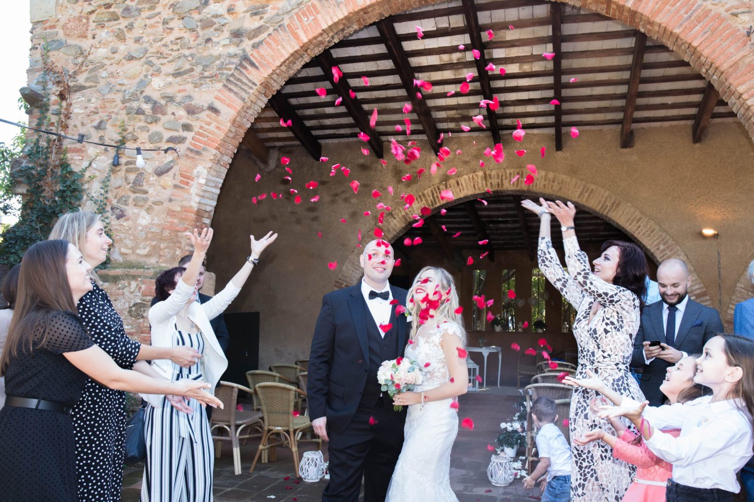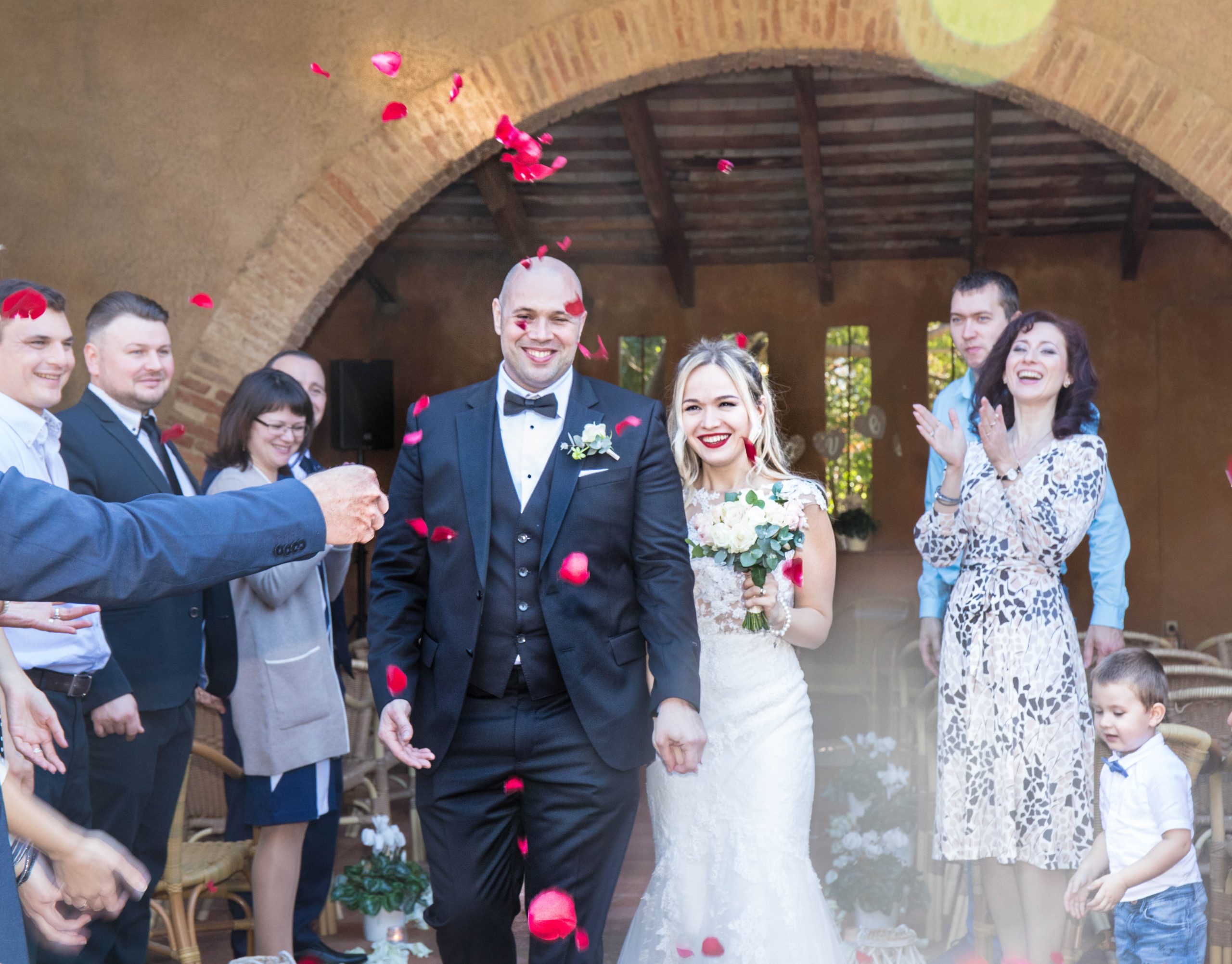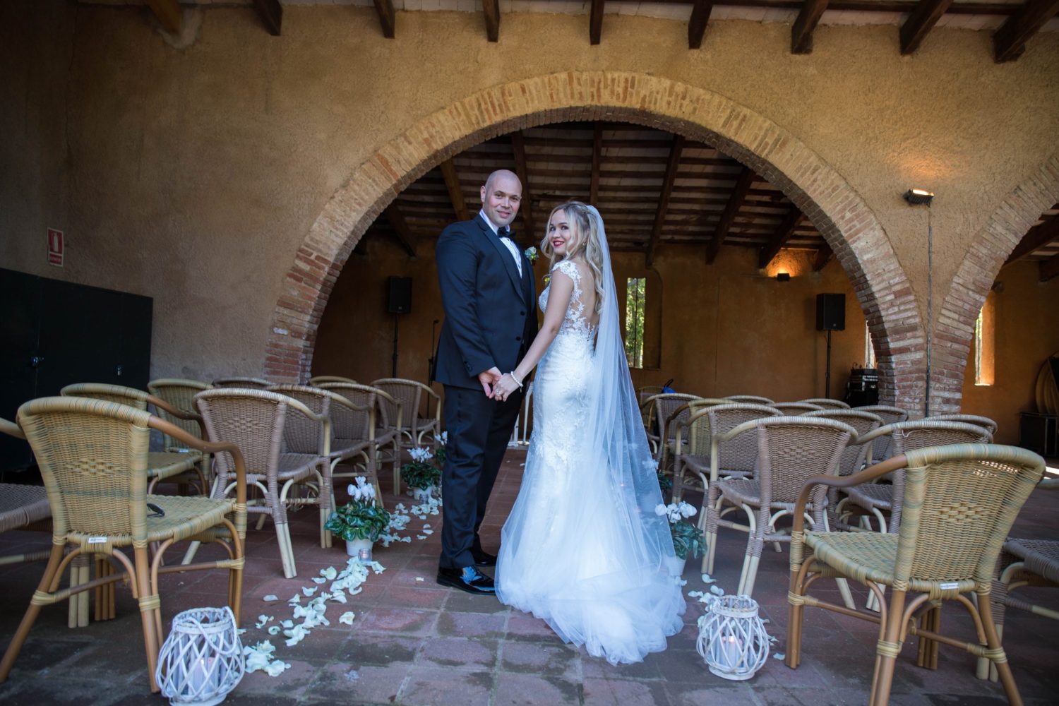 We organized a small, cozy wedding in Barcelona for Kevin and Svetlana. The couple came from Dubai and the guests arrived from different parts of the world. We had only 1.5 months to organize the wedding in the best possible way, and we managed! The couple considered venues in Barcelona itself so that guests could quickly and conveniently gather for the ceremony on their wedding day. That's why we chose a traditional Catalan house(masia) Can Cortada in the city of Barcelona, which was established in XI century. In the morning, our stylist prepared the bride, and later future Mr & Mrs went to Can Cortada for the ceremony. Here, in the outdoor courtyard, guests were already waiting for the couple. The beautiful ceremony was performed outdoors by a showman who continued the entertainment program later during lunch. Cocktail party after the ceremony took place on a beautiful outdoor patio and the celebratory lunch took place in Masia's indoor antique living room. The menu included traditional Spanish appetisers and dishes. There was a DJ in a separate room during lunch, so guests and newlyweds danced, had fun and had a great time! We wish a lot of love and happiness to the beautiful couple!