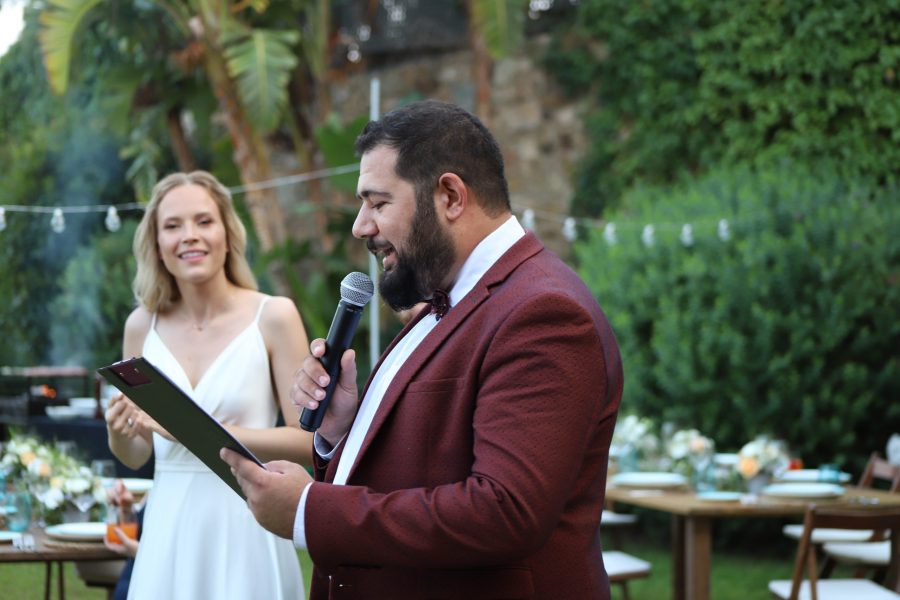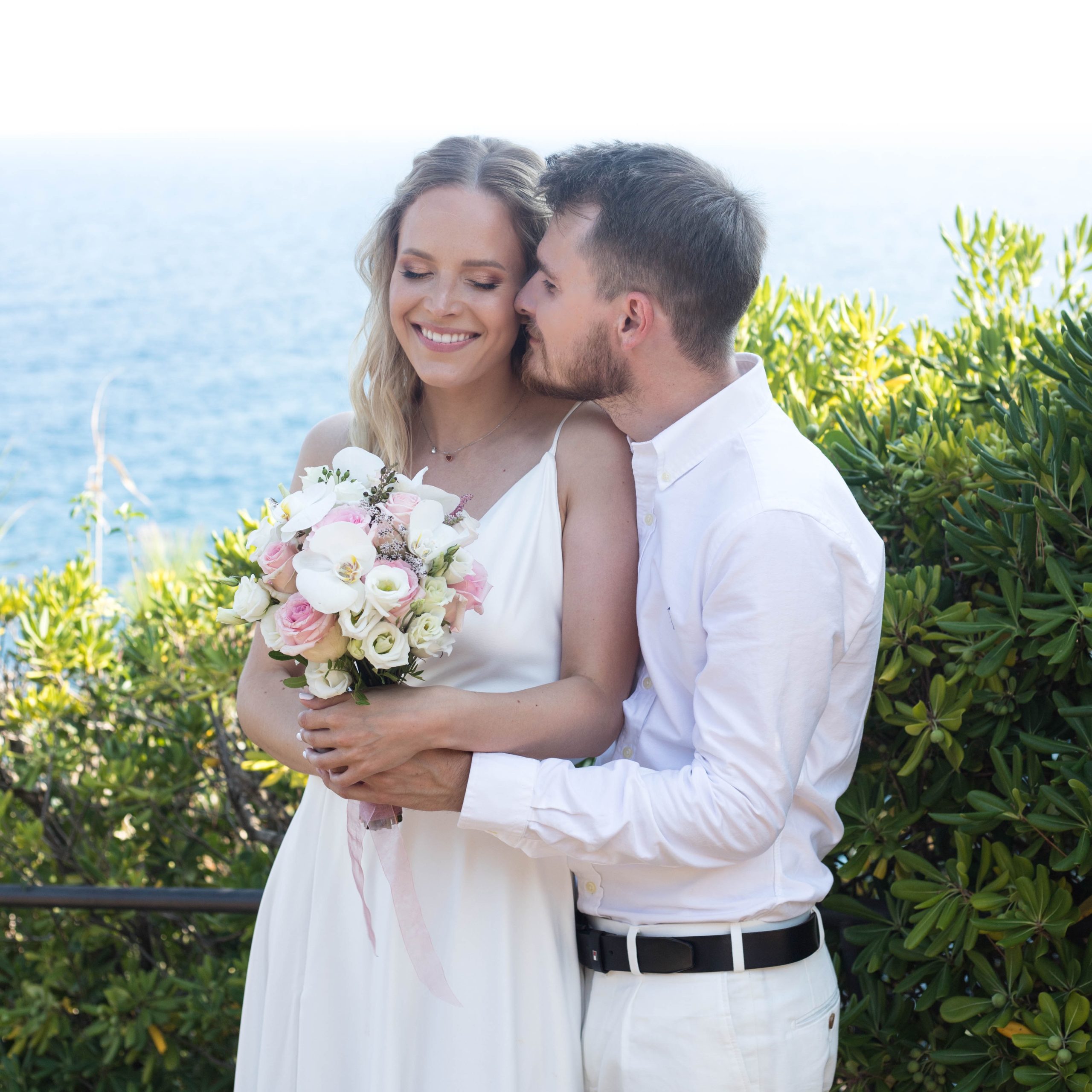 This wonderful day we organized a romantic wedding at the villa with a gorgeous sea view for a wonderful couple from Estonia. The couple's main idea was to find a villa for them and their close friends and relatives to live in, where they could also hold the ceremony itself! There are many luxury villas in Catalonia that meet this requirement, so we offered different options and the couple chose a villa Casa Soleada on the Maresme coast, 40 km from Barcelona. Our florists from Barcelona decorated the ceremony area with fresh flowers, mounted an arch and added decorative details. On the day of the celebration, our stylist helped the beautiful bride get ready. Later, the couple left with our professional photographer for a photo shoot in the Botanical Garden with a gorgeous view of the sea! When the couple returned from the photo shoot to their villa, the outdoor ceremony had already been prepared and later performed by our showman. After the beautiful ceremony, we organized a cocktail party in the outdoor courtyard with various appetizers, grilled meats and fish, typical Spanish dishes and a Candy bar. During the celebration, our showman entertained the guests with various games. The evening ended with a delicious wedding cake and an outdoor disco! We wish the beautiful couple everlasting love and happiness!